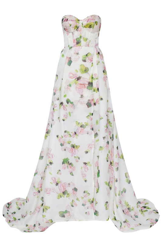 Apple Blossom Floral Puff Sleeve Maxi Dress