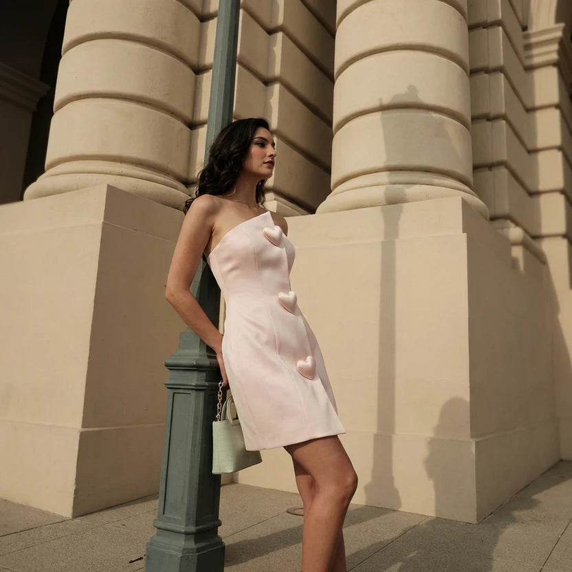 it contemporary, while the architectural detailing gives it refined sophistication. Perfect for daytime soirées, chic brunches, Valentine edits, or fashion-forward city moments, this dress blends sweetness with statement elegance
