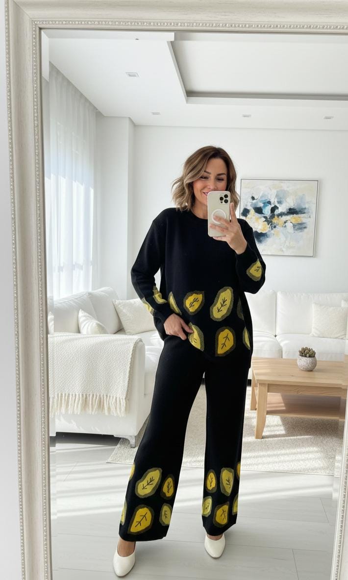 Botanical Motif Co-Ord features a relaxed silhouette highlighted by artistic botanical detailing that adds visual interest without overwhelming the design. The top offers an easy, comfortable fit, paired with coordinated bottoms for a balanced and polished look.