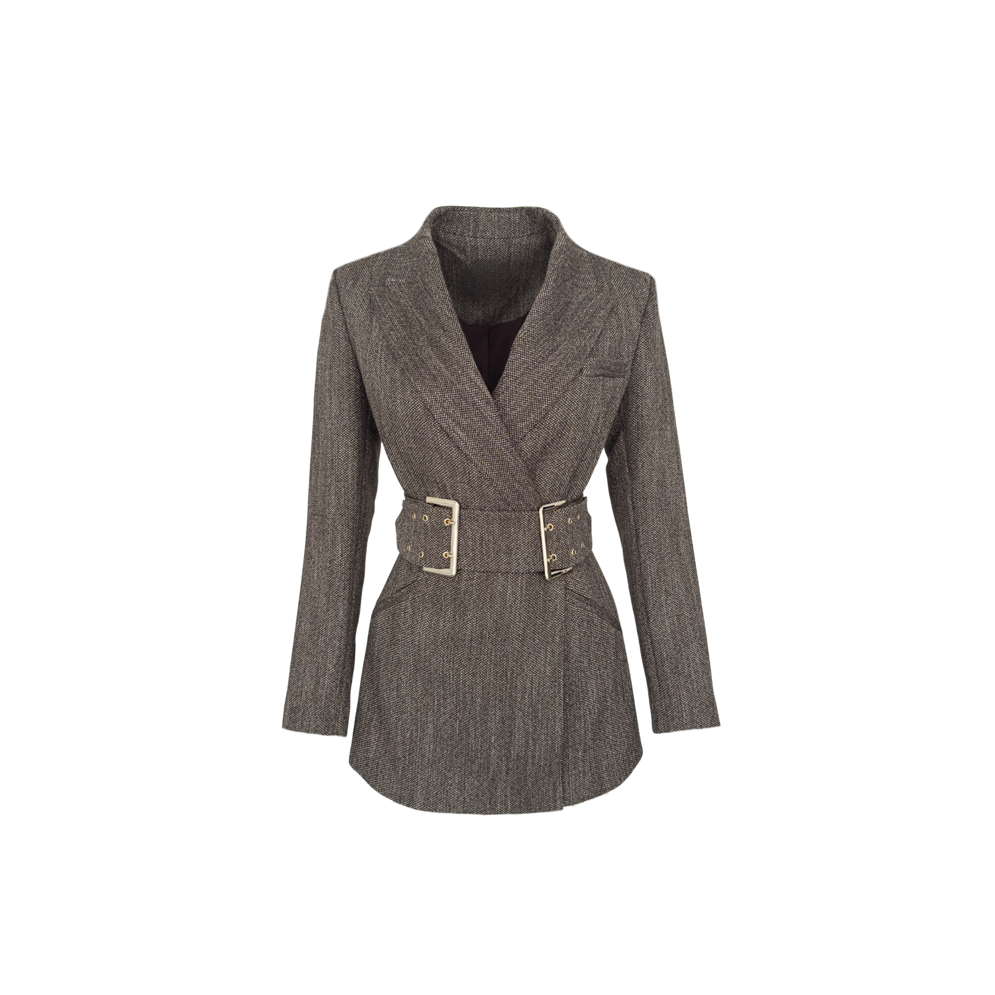 A statement power set featuring a tailored blazer with bold dual buckle detailing and matching wide-leg trousers. Designed with clean lines and a structured silhouette, it offers a seamless blend of strength and sophistication. Perfect for high-profile meetings, formal events, or elegant evenings, this set defines modern authority with timeless elegance.