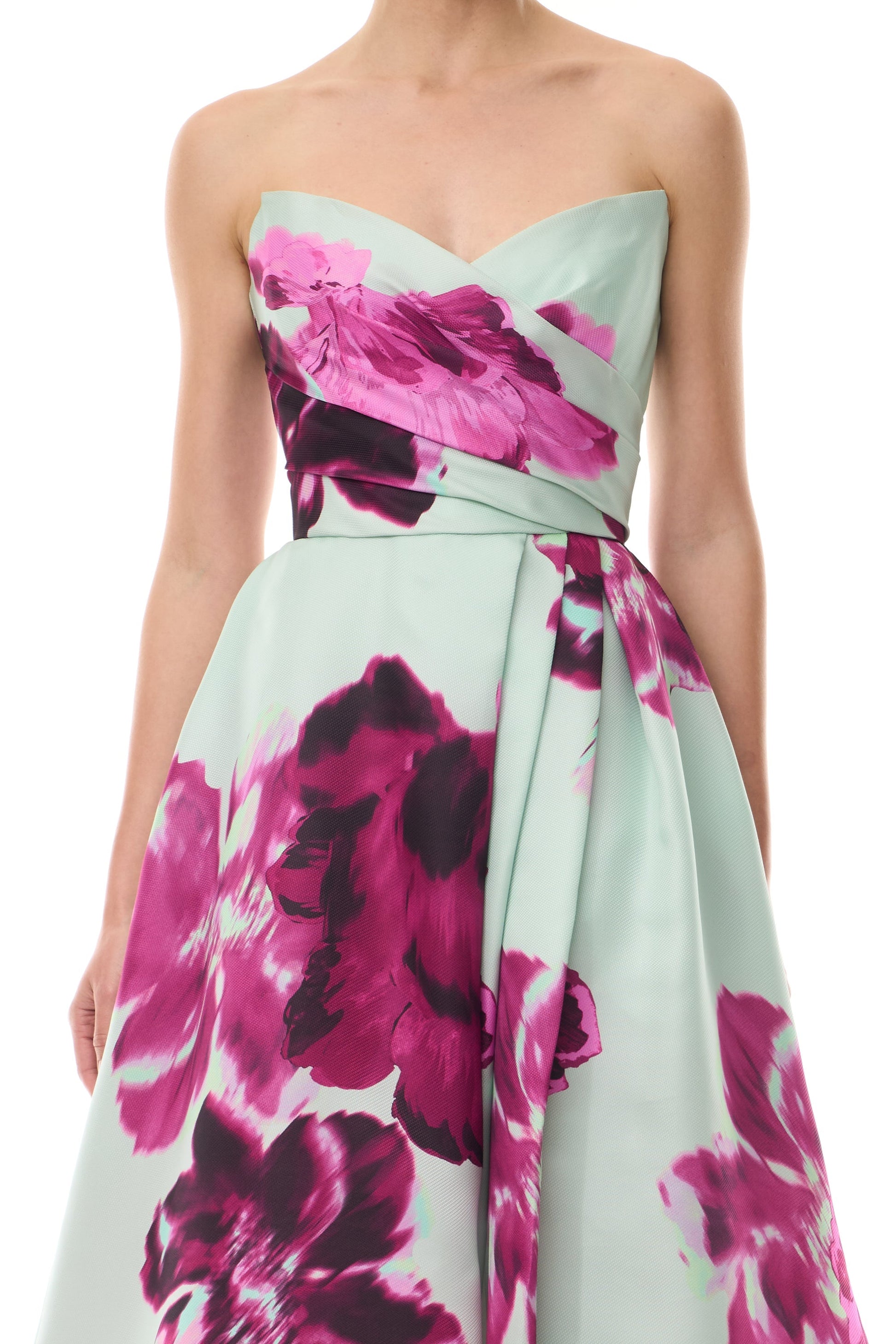 The Electric Bloom Strapless Dress is your statement piece for unforgettable evenings. Designed to captivate, this full-length gown features a bold, oversized floral print in rich magentas against a refreshing, light-toned base. The sweetheart neckline enhances your collarbone, while the floor-grazing silhouette and thigh-high slit add undeniable drama. Perfect for galas, weddings, and red-carpet moments—this is your moment to shine.