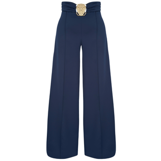 A refined coordinated ensemble featuring a sheer button-down shirt paired with high-waisted wide-leg trousers. Accented with a bold statement belt, this set exudes elegance and confidence. Ideal for business meetings, social events, or evenings out, it offers a perfect balance of sophistication and contemporary style.