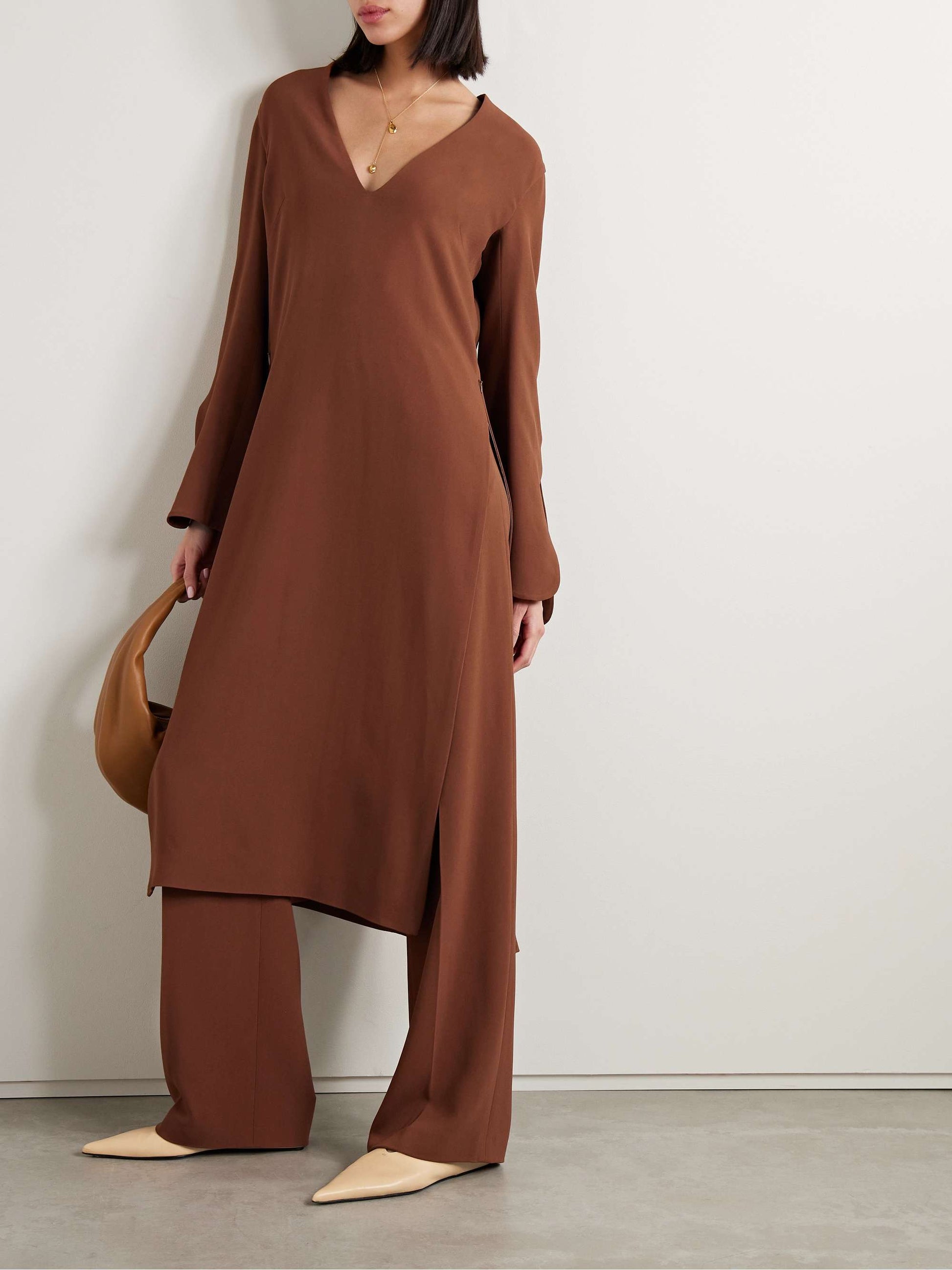 The Forme Midi Dress channels modern sophistication with a design inspired by architectural lines. Its fluid silhouette offers a loose, effortless fit, while the clean V-neckline adds a touch of minimalism. Perfect for those seeking understated elegance, it’s a standout choice for formal gatherings, art events, or evening soirées.