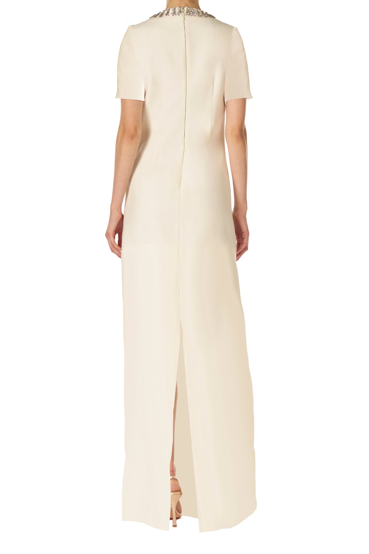 Step into effortless elegance with the Jeweled Neck Dress – a striking floor-length gown designed for modern sophistication. The centerpiece is its statement neckline, adorned with shimmering embellishments that instantly draw the eye. With its soft silhouette and subtle slit in the back, this piece merges modest design with graceful fluidity. Perfect for galas, weddings, or any upscale evening affair, it’s a look that quietly commands attention.