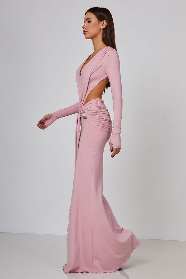 Introducing our "" Maxi Dress, designed to captivate with its sensual allure. Crafted from luxuriously soft stretch fabric, this dress features a daring deep neckline that fully exposes the back for a striking statement. Adorned with decorative gathered elements on the front, complemented by thin ties at the back, it offers a perfect blend of elegance and allure. Made with 100% lycra, it ensures both comfort and style for any occasion.