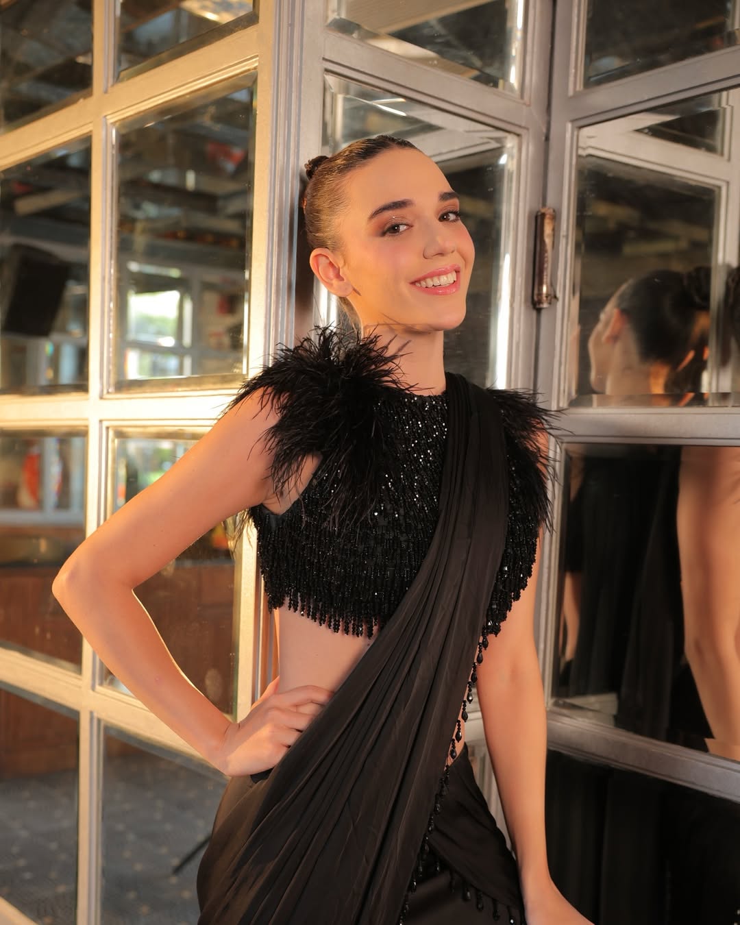 Presenting the dripping elegance of Midnight Obsidian Saree — where bold meets beautiful. This Indo-Western drape blends the classic charm of a saree with the statement edge of a contemporary silhouette.