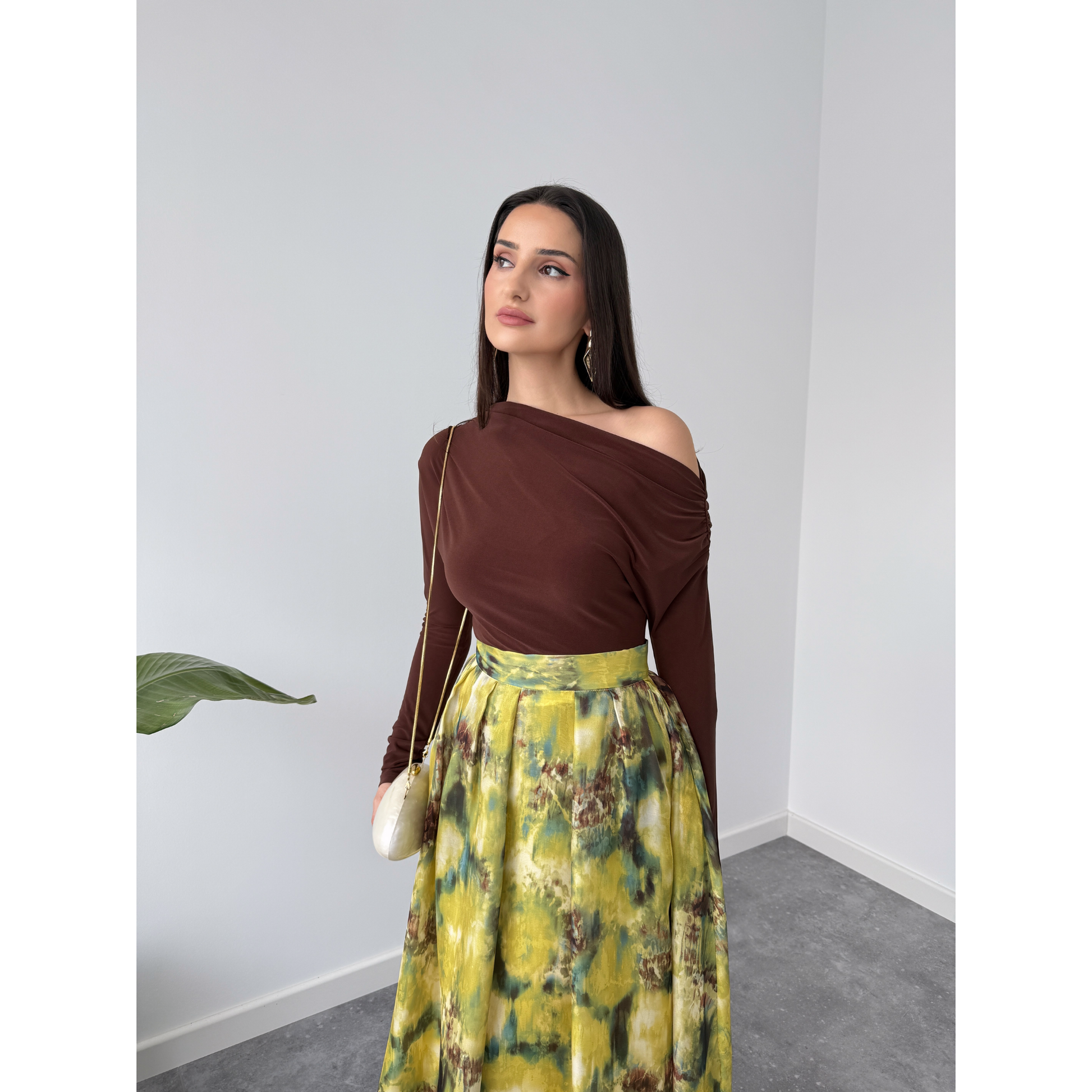 Elevate your everyday or evening style with the Mocha Muse Collar Draped Top. Designed in a rich mocha brown hue, this top drapes beautifully across the body with a flattering off-shoulder silhouette. The asymmetric neckline creates a sophisticated yet daring look, perfect for fashion-forward women who love to make a statement. Whether you're heading out for brunch, date night, or a gallery opening, this top transitions effortlessly from day to night.