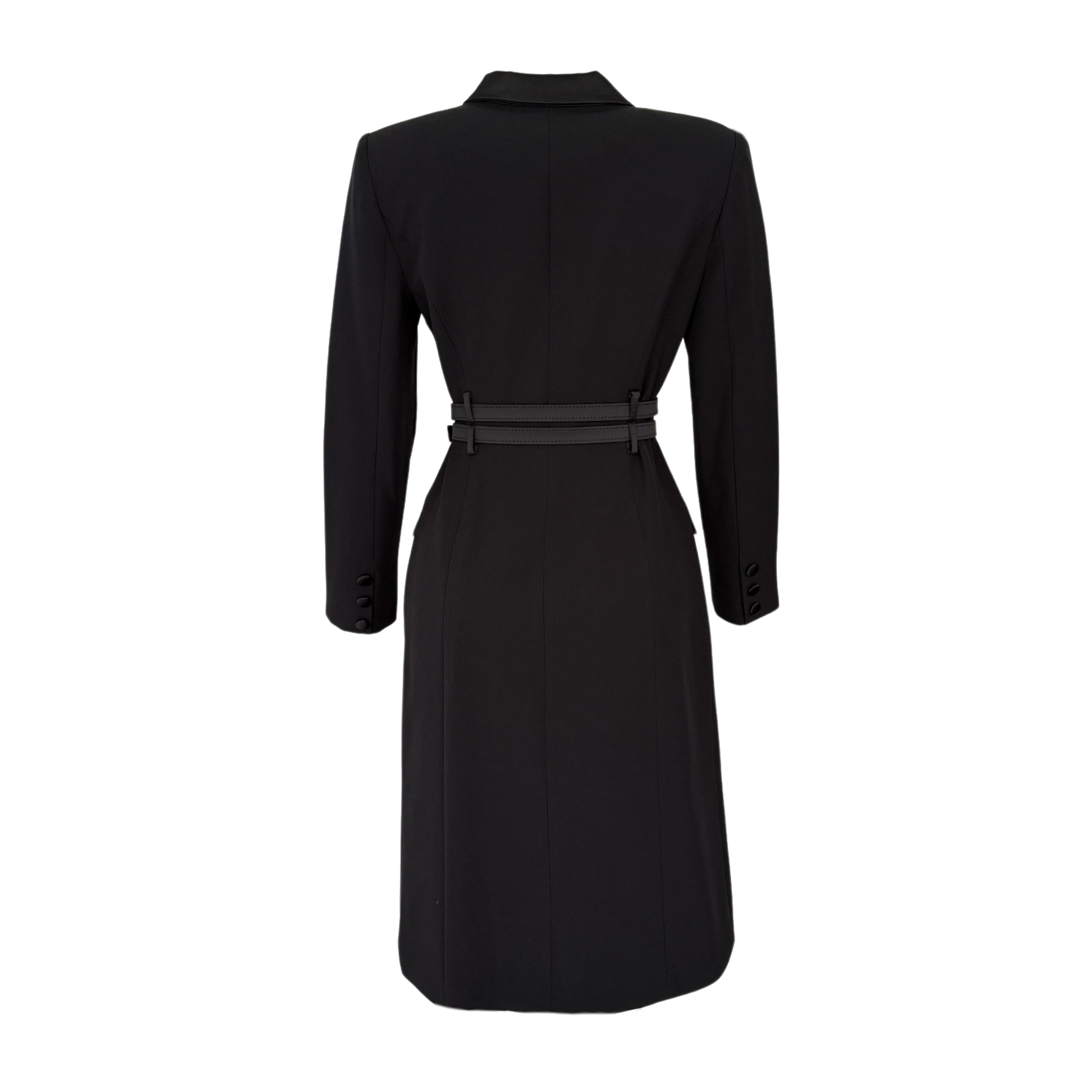Command attention with the Monochrome Authority Blazer Dress, a timeless blend of elegance and strength. Featuring a structured silhouette, sharp lapels, and bold black accents on a creamy base, this dress is tailored for the modern woman who leads with confidence and grace.