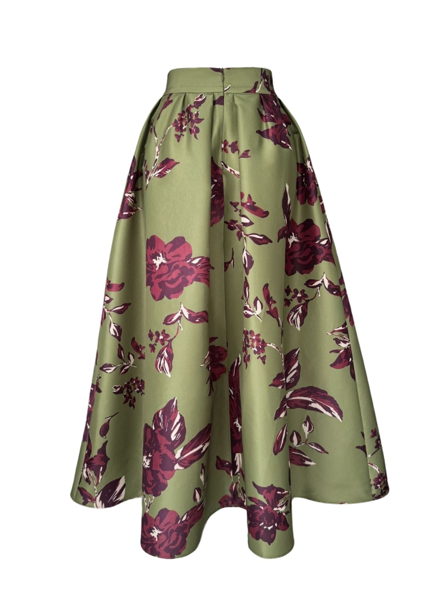 Step into timeless charm with the Olive Bloom Flared Skirt – where nature’s elegance meets effortless grace. This piece features a lush, olive-green base accented with bold, maroon floral prints, creating a romantic and versatile silhouette that flatters every figure.