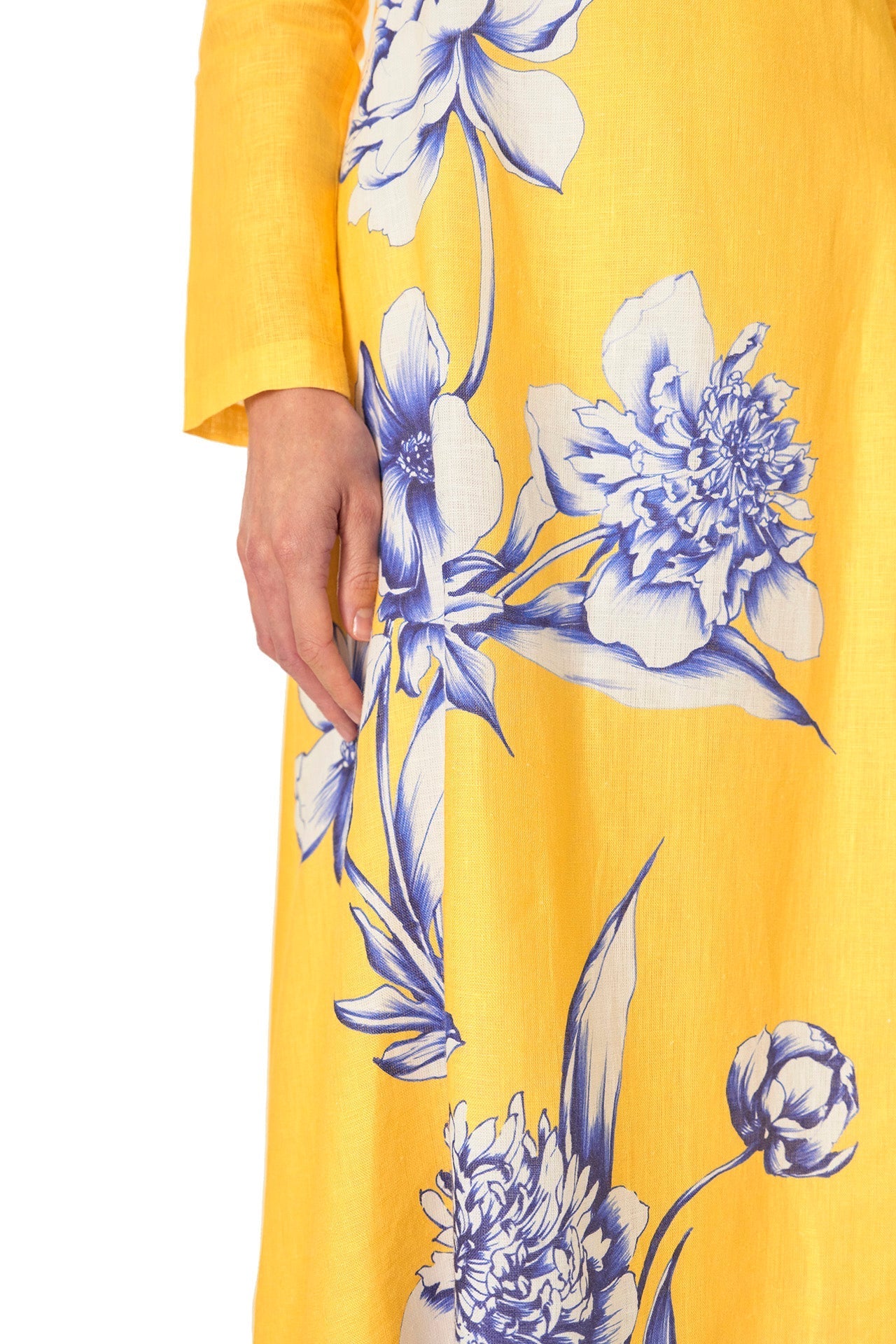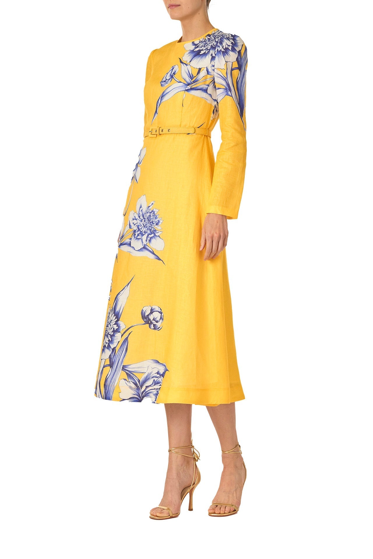 The Sunlit Bloom Belted Midi Dress brings sunshine to your wardrobe with its vibrant hue and artistic floral print. Crafted for women who appreciate statement-making elegance, this long-sleeve, midi-length dress blends structure with fluidity, giving you a commanding yet graceful look. The asymmetrical floral motif in a soft contrast shade adds a contemporary edge to its timeless silhouette, making it a standout for daytime events, festive brunches, or upscale resort outings.